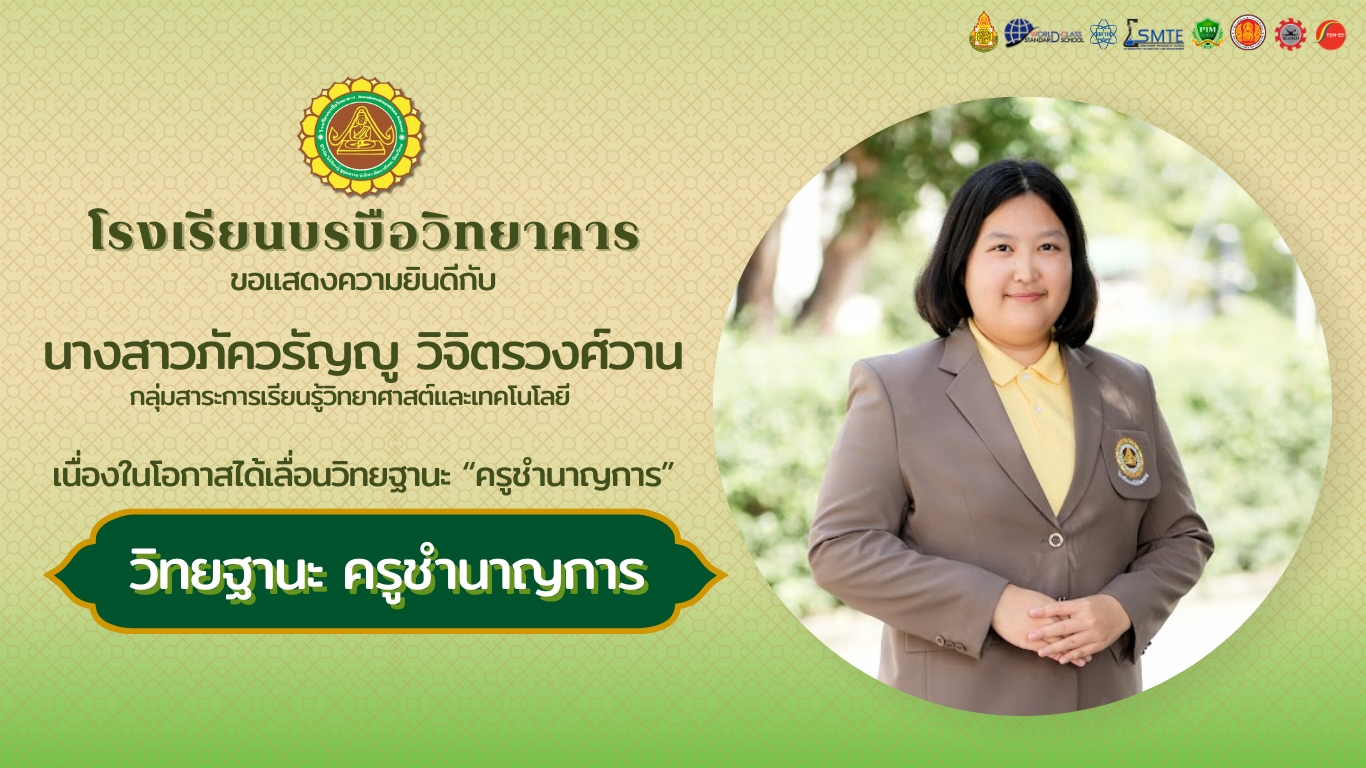 โรงเรียนบรบือวิทยาคาร ขอแสดงความยินดีกับ นางสาวภัควรัญญู วิจิตรวงศ์วาน กลุ่มสาระการเรียนรู้วิทยาศาสต์และเทคโนโลยี
